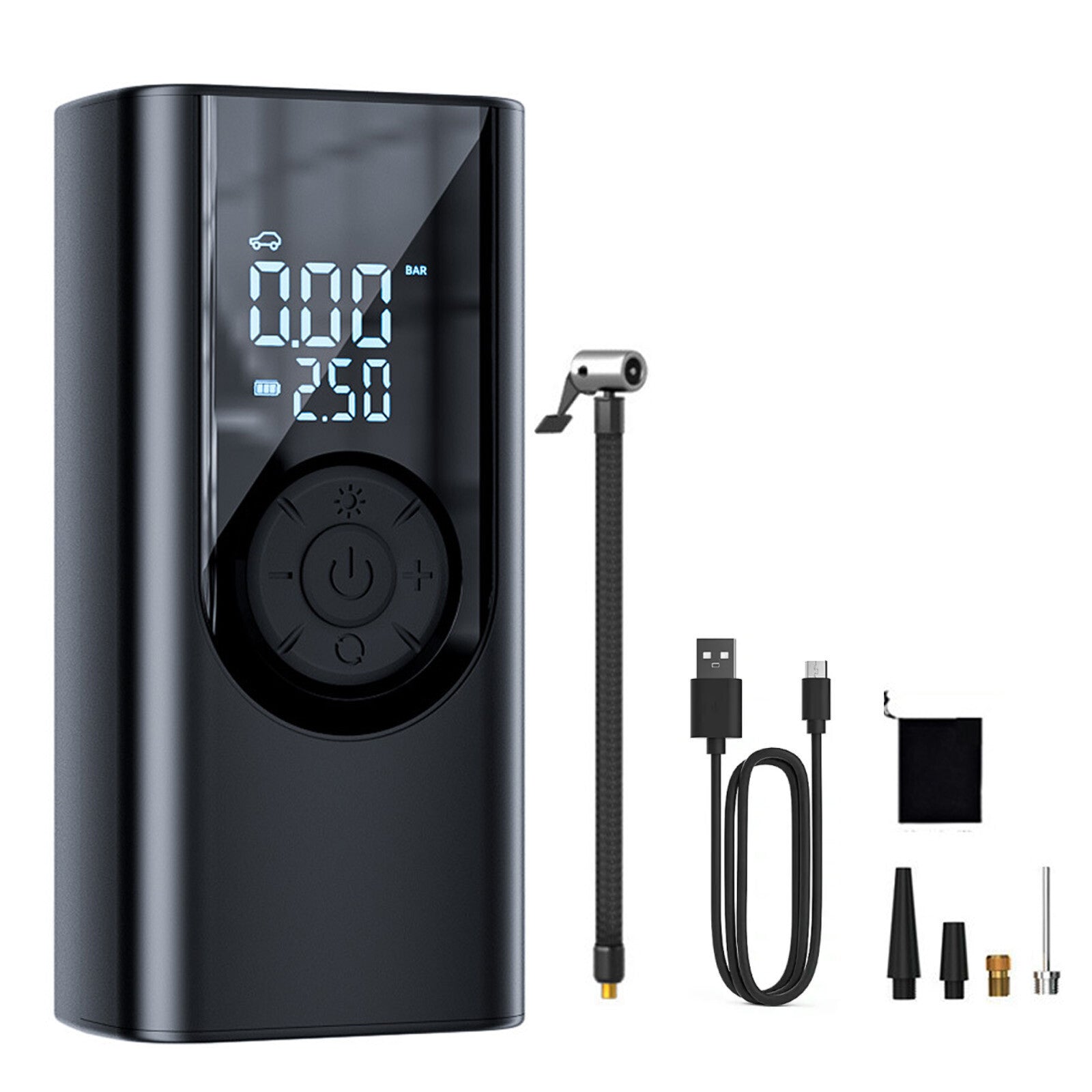 - LCD Display: The battery air compressor has a digital LCD pressure gauge, accurately displays real-time and preset tire pressures.